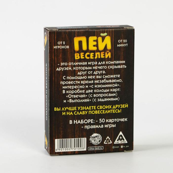 Купить игра для компании "пей веселей" 50 карт от 180 руб. с доставкой до пункта выдачи в Благодарном. Интернет магазин ДекаМаркет. Оплата при получении.